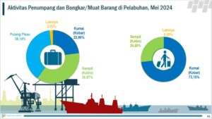 Sementara, dari sisi aktivitas penumpang angkutan laut, ujar Agnes menyebut aktivitas tersebut terkonsentrasi di Pelabuhan Kumai (73,15 persen). “Jumlah penumpang kapal mengalami penurunan sebesar 31,60 persen, dari 81.902 orang (April 2024) menjadi 56.024 orang (Mei 2024). Penurunan ini berasal dari jumlah penumpang yang berangkat turun sebesar 62,04 persen,” imbuhnya.