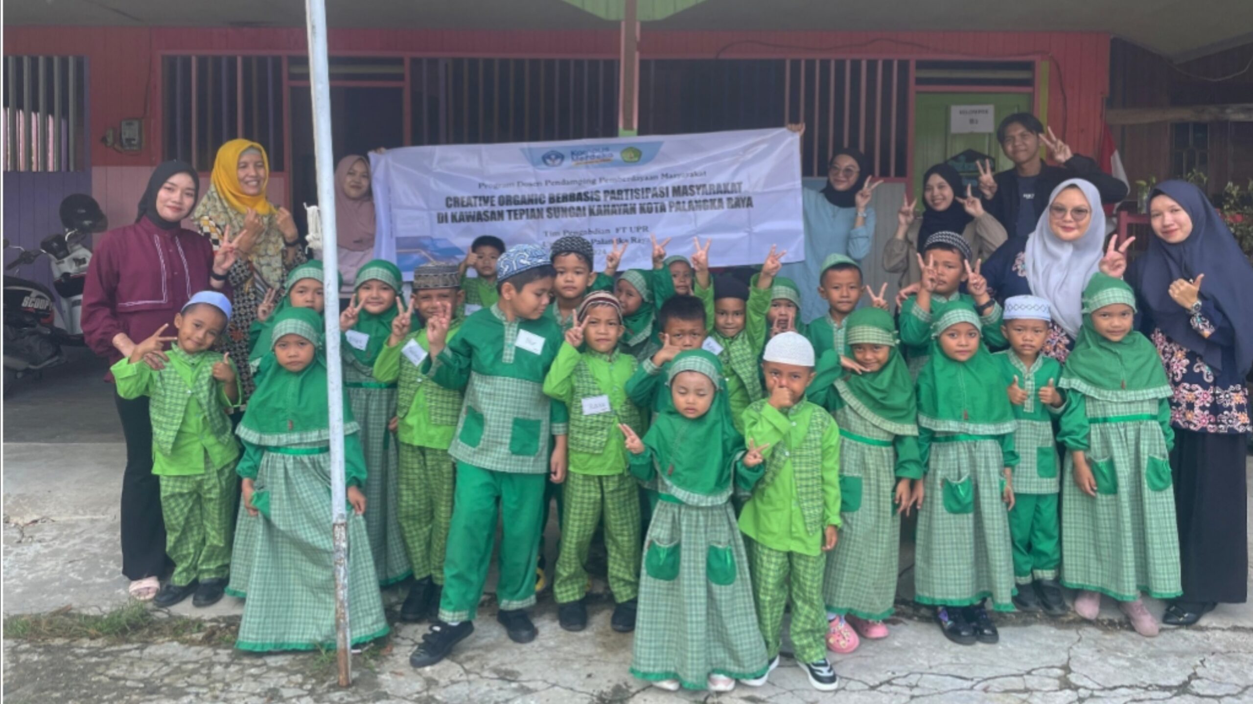 PALANGKARAYA – Tim Program Dosen Pendamping Pemberdayaan Masyarakat (PDPPM) Fakultas Teknik Universitas Palangka Raya (FT-UPR) melaksanakan kegiatan Creative Organic, di Kawasan Tepian Sungai Kahayan, lebih tepatnya di TK AR Raudah Muslimat Nahdlatul Ulama (NU) Kelurahan Pahandut Seberang, Kecamatan Pahandut, Kota Palangka Raya Tahun 2024, Rabu (14/08/2024).