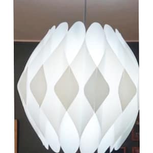 “Proses kreatifitas sangatlah beragam, dari bentuk maupun bahan yang digunakan, Pada kali ini pendant lamp dibuat dengan material mika film putih, yang akan memendarkan warna lampu menjadi lebih soft dan juga efek lipatan-lipatan mika film menambah estetika lampu ini,”kata Elis.