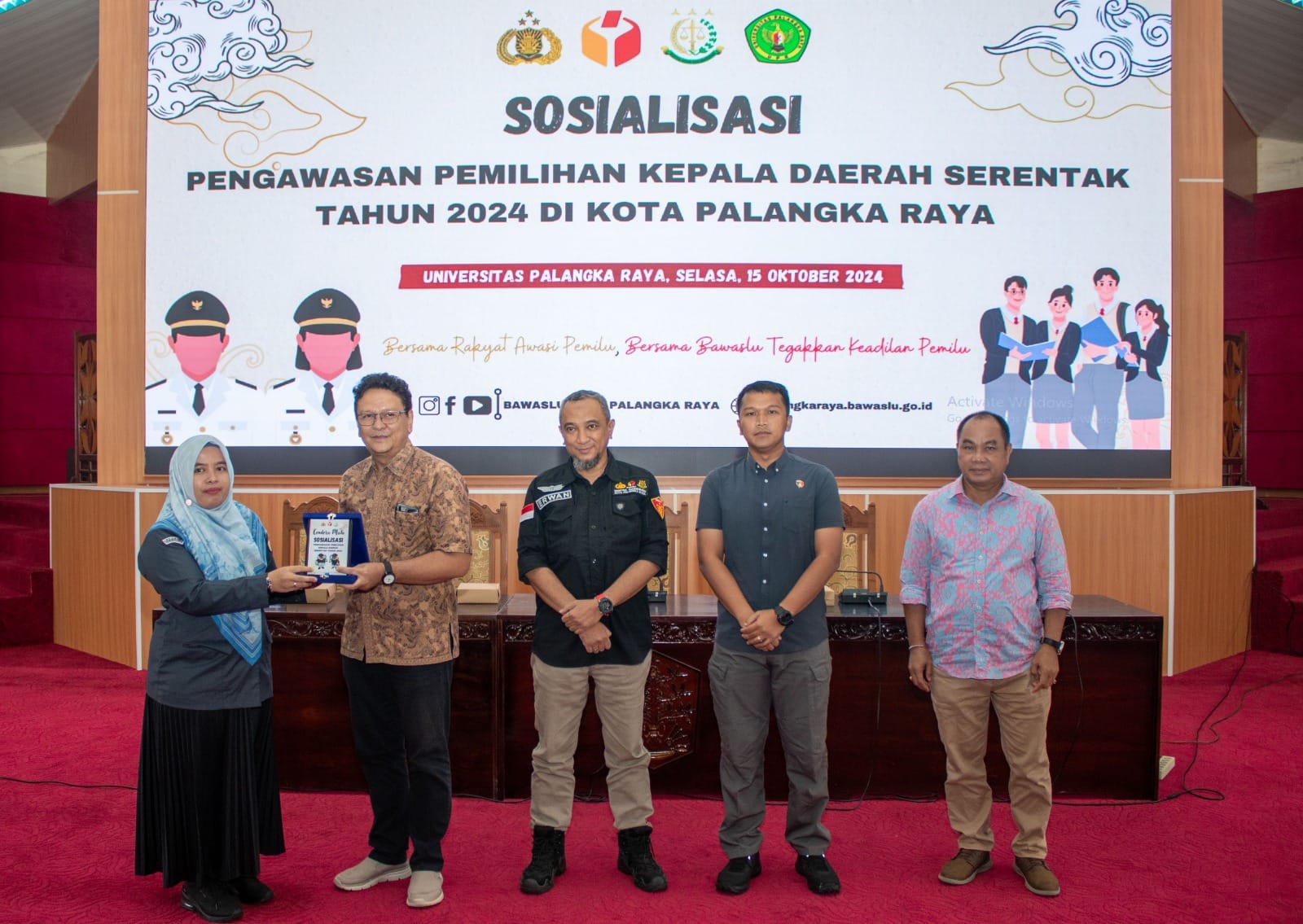 PALANGKARAYA – Dalam rangka turut menciptakan iklim politik dan demokrarasi yang sehat, Badan Pengawas Pemilihan Umum (Bawaslu) Kota Palangka Raya bekerjasama dengan Tim Sentra Penegakan Hukum Terpadu (Gakkumdu) Palangka Raya mengadakan kegiatan Sosialisasi Pengawasan Pemilihan Kepala Daerah (Pilkada) Serentak Tahun 2024, di Universitas Palangka Raya (UPR), Selasa (15/10/2024).