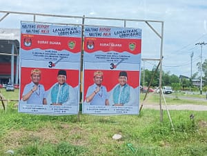 PALANGKARAYA – Terdokumentasi di kamera ponsel warga, terkait dugaan pelanggaran pemasangan Alat Peraga Kampanye (APK) Paslon Gubernur dan Wakil Gubernur Kalteng Nomor Urut 03 sesaat akan berlangsungnya perhelatan Jambore Tani 2024 di halaman akses masuk GOR Indor, Jalan Tjilik Riwut Km 5,5 Kota Palangkaraya dilaporkan ke Bawaslu Kalteng, Selasa (22/10/2024) sore.