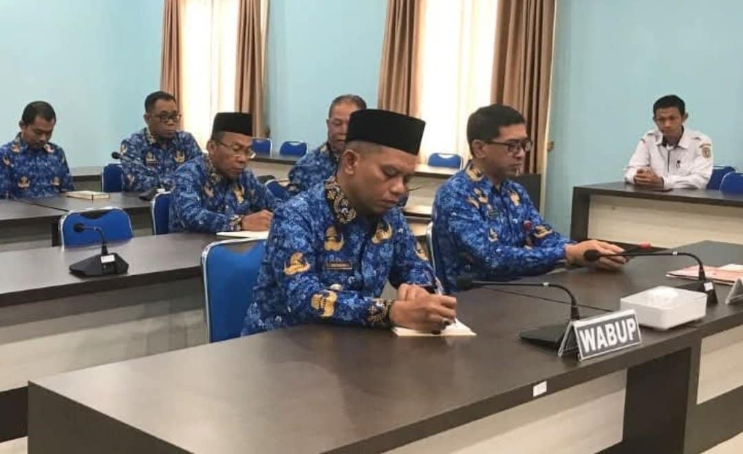Wabup Katingan, Firdaus beserta jajarannya ketika mengikuti rakoor strategis bersama dengan pemerintahan pusat secara virtual, Senin, (17/3/2025).