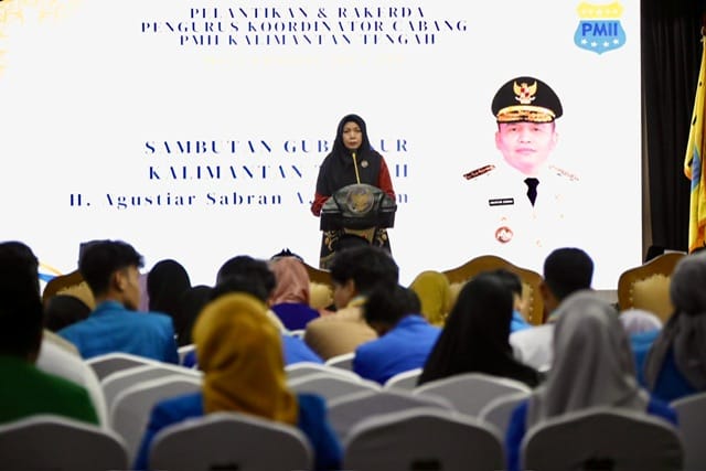 PALANGKARAYA – Pemerintah Provinsi Kalimantan Tengah (Kalteng) menyambut baik pelantikan dan rapat kerja Pengurus Koordinator Cabang (PKC) Pergerakan Mahasiswa Islam Indonesia (PMII) Kalteng yang digelar di Aula Jayang Tingang, Kantor Gubernur Kalteng, Minggu (20/04/2025). Asisten Perekonomian dan Pembangunan Setda Kalteng, Sri Widanarni, hadir mewakili Gubernur Kalteng.
