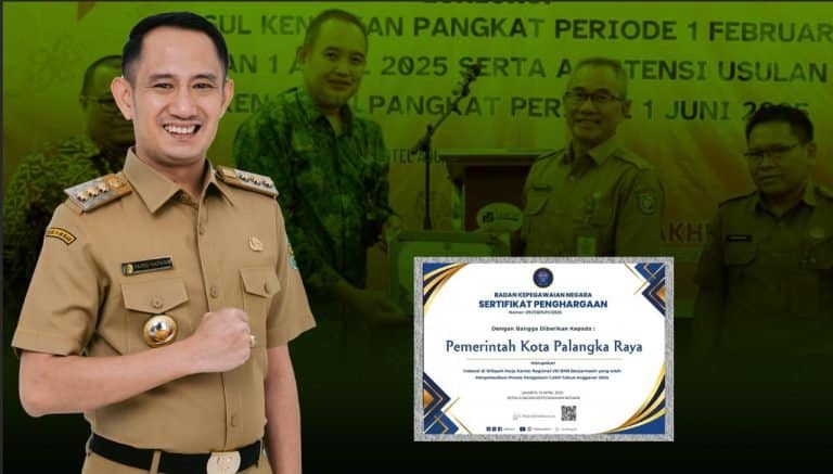 PALANGKA RAYA – Pemerintah Kota Palangka Raya mencatatkan prestasi membanggakan dengan meraih penghargaan atas keberhasilan menyelesaikan proses pengadaan Calon Aparatur Sipil Negara (CASN) Tahun Anggaran 2024. Penghargaan ini diberikan oleh Kantor Regional VIII Badan Kepegawaian Negara (BKN) sebagai bentuk apresiasi atas kinerja optimal dalam reformasi birokrasi daerah.