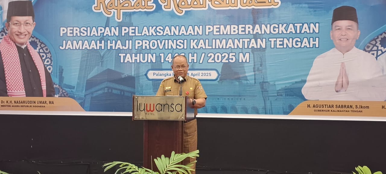 PALANGKARAYA – Pemerintah Provinsi Kalimantan Tengah melalui Asisten Pemerintahan dan Kesra Setda Kalteng, Maskur, membuka Rapat Koordinasi (Rakor) Persiapan Pemberangkatan Jemaah Calon Haji Kalteng Tahun 1446 H/2025 M di Ballroom Hotel Luwansa Palangka Raya, pada Senin (28/4/2025).