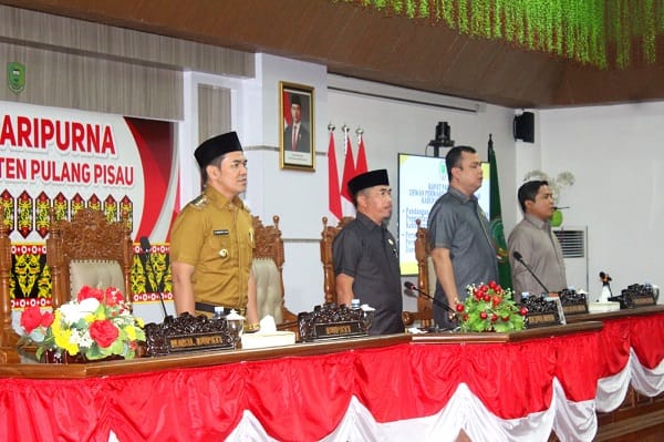 PULANG PISAU – Bupati Pulang Pisau, Ahmad Rifai, menghadiri Rapat Paripurna DPRD Kabupaten Pulang Pisau Masa Persidangan I yang digelar pada Senin (28/4/2025). Rapat tersebut mengagendakan penyampaian pandangan umum fraksi serta jawaban eksekutif atas masukan terhadap pidato pengantar Rencana Pembangunan Jangka Menengah Daerah (RPJMD).