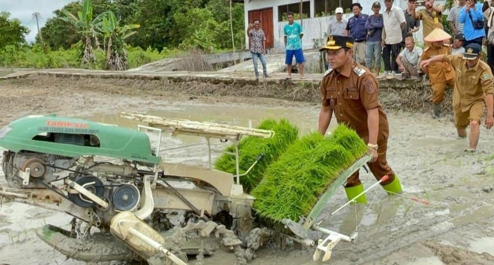 BUNTOK – Pemerintah Kabupaten Barito Selatan terus membuktikan komitmennya dalam memperkuat ketahanan pangan melalui distribusi benih unggul dan alat mesin pertanian (alsintan). Upaya ini diwujudkan dalam kegiatan tanam padi bersama di Desa Penda Asam, Selasa (27/5/2025).