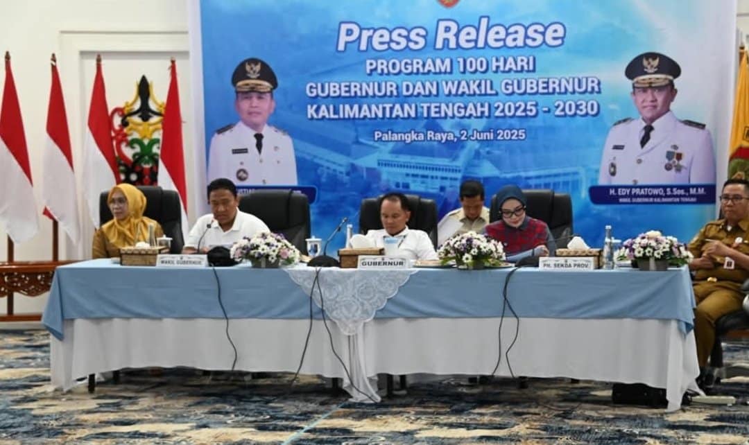 Kegiatan press release program 100 hari kerja Gubernur dan Wakil Gubernur Kalteng, Agustiar Sabran - Edy Pratowo.