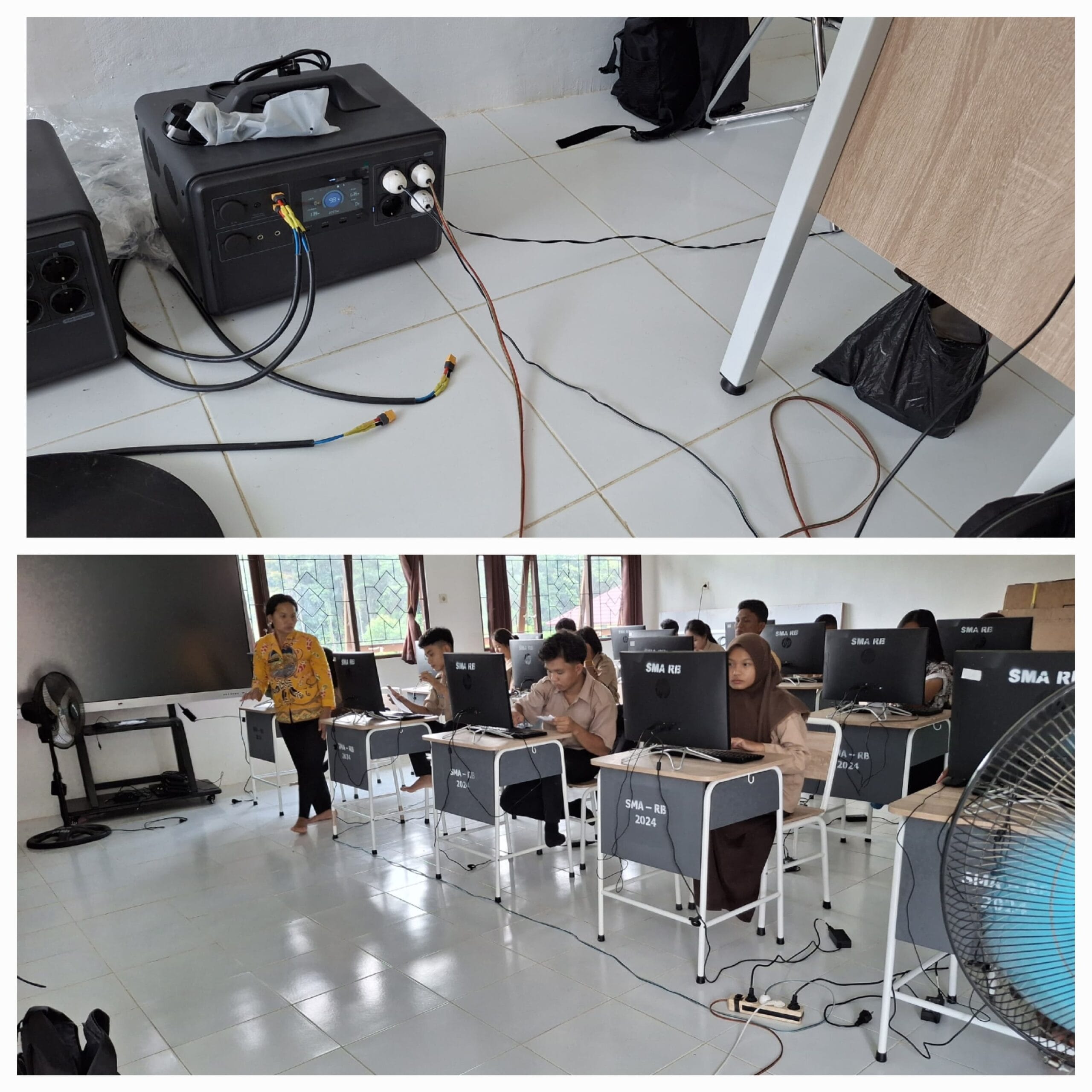 GUNUNG MAS – Meski sempat mengalami gangguan listrik, pelaksanaan gladi Asesmen Nasional (AN) hari kedua di SMAN 1 Rungan Barat tetap berlangsung lancar. Keberhasilan tersebut tidak lepas dari pemanfaatan energi terbarukan dan jaringan internet satelit.