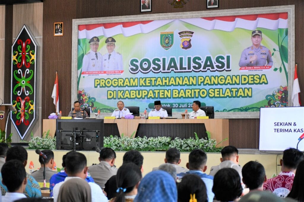 BUNTOK – Bupati Barito Selatan, H. Eddy Raya Samsuri, dan Wakil Bupati Khristianto Yudha menghadiri kegiatan Sosialisasi Program Ketahanan Pangan Tahun 2025 yang digelar di Aula Polres Barito Selatan, Desa Sababilah, Rabu (30/07/2025) lalu.