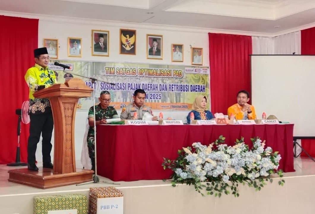 BUNTOK – Wakil Bupati Barito Selatan, Khristianto Yudha, menghadiri acara sosialisasi pajak dan retribusi daerah di Kelurahan Pendang, Kecamatan Dusun Utara, Kabupaten Barito Selatan, Senin (7/8/2025). Acara ini digelar untuk memperkuat pondasi pembangunan daerah melalui optimalisasi Pendapatan Asli Daerah (PAD).