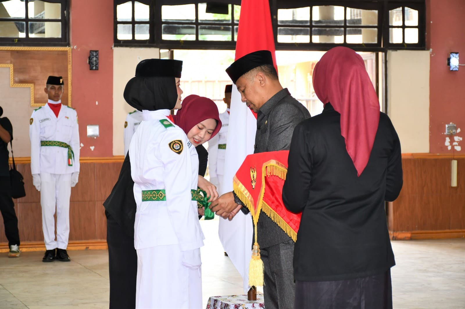 Dalam kesempatan itu, salah satu siswa terpilih bertindak sebagai pemimpin upacara dan menerima langsung penyematan lencana serta pemasangan Kendit tanda pengukuhan dari Bupati.
