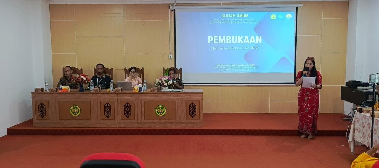 PALANGKARAYA – Program Studi Pendidikan Kimia, FKIP Universitas Palangka Raya (UPR) menyelenggarakan kuliah umum bertajuk “Smart Chemistry Learning: Optimalisasi Pembelajaran Kimia dengan Deep Learning.” Acara berlangsung di Gedung PPIIG UPR, ruang Teater A Lantai 6, serta Zoom Meeting, Rabu (27/08/2025).