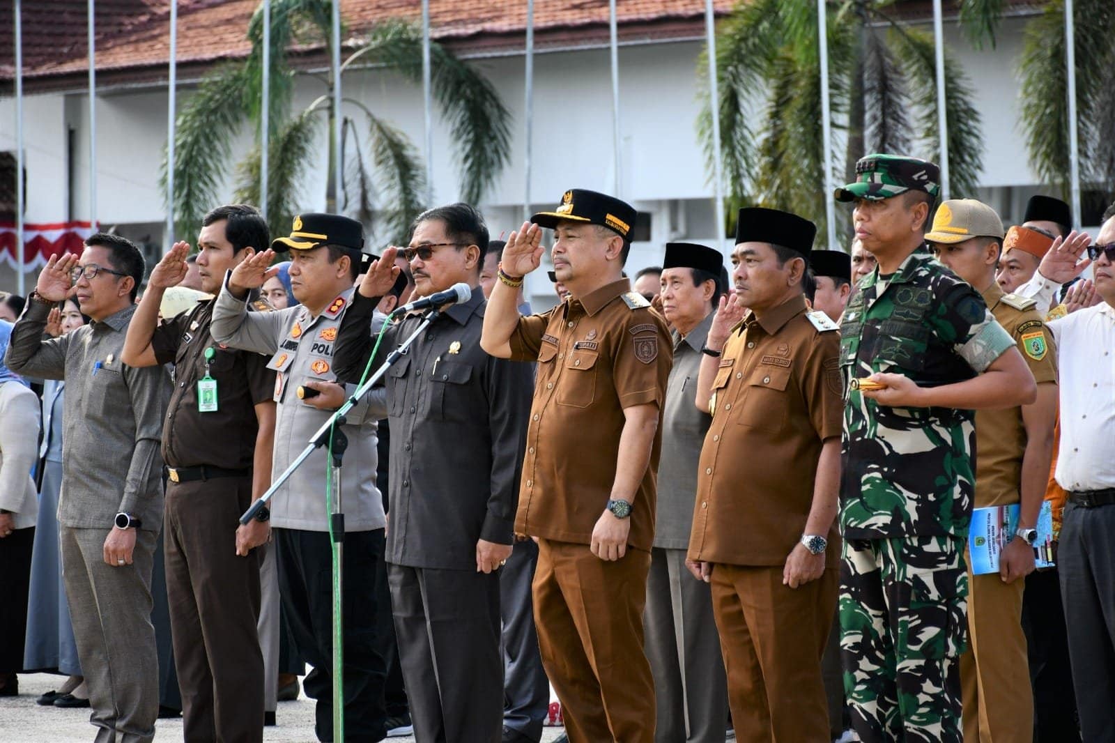 BUNTOK – Bupati Barito Selatan Eddy Raya Samsuri memimpin apel gabungan dan doa bersama lintas agama di halaman Kantor Bupati Barito Selatan.