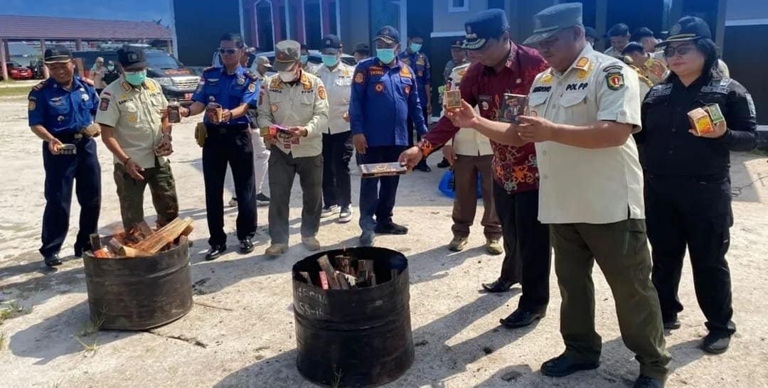 Satuan Polisi Pamong Praja dan Pemadam Kebakaran (Satpol PP dan Damkar) Kabupaten Katingan bersama Balai Besar Pengawas Obat dan Makanan (BPOM) Provinsi Kalimantan Tengah serta Dinas Kesehatan Kabupaten Katingan melaksanakan kegiatan pemusnahan barang sitaan hasil operasi gabungan, Kamis (16/10/2025).