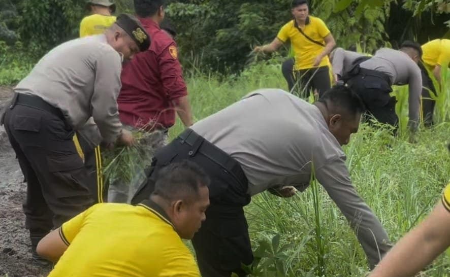 Jajaran Polres melaksanakan kegiatan bersih-bersih dan pemupukan secara gotong royong di lahan tersebut, Jumat (17/10/2025).
