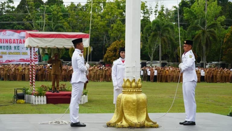 PALANGKARAYA – Pemerintah Kota Palangka Raya menggelar Upacara Peringatan Hari Sumpah Pemuda (HSP) ke-97 di Halaman Kantor Wali Kota Palangka Raya, Selasa (28/10/2025). Upacara berlangsung khidmat dan penuh semangat kebangsaan, dengan Wakil Wali Kota Palangka Raya, Achmad Zaini bertindak sebagai inspektur upacara.