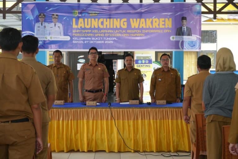 PALANGKARAYA – Pemerintah Kota Palangka Raya melalui Dinas Komunikasi, Informatika, Statistik, dan Persandian (Diskominfo) resmi meluncurkan aplikasi inovatif bernama WAKREN atau WhatsApp Kelurahan untuk Respon Informasi dan Perizinan yang Efisien dan Nyaman, di Aula Kelurahan Bukit Tunggal, Senin (27/10/2025) kemarin.