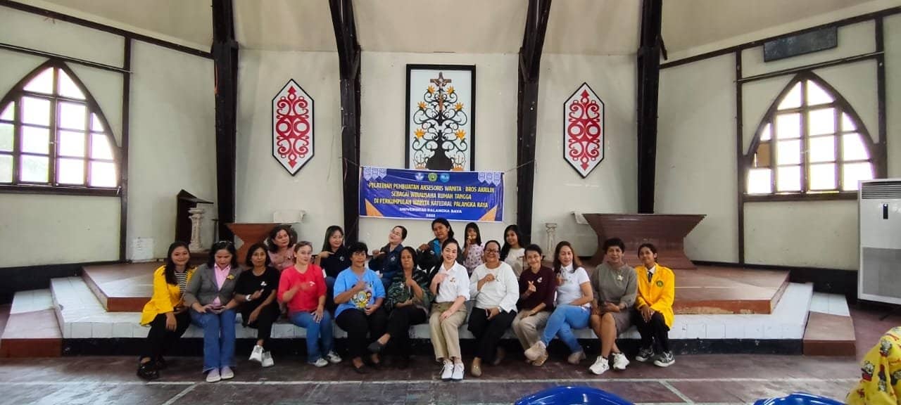PALANGKARAYA – Lembaga Penelitian dan Pengabdian Kepada Masyarakat Universitas Palangka Raya (LPPM-UPR), melalui Tim Pengabdian kepada Masyarakat (PKM) Fakultas Teknik (FT) UPR menggelar pelatihan pembuatan aksesori wanita berupa bros akrilik bagi anggota Perkumpulan Wanita Katedral Palangka Raya, Minggu (09/11/2025) siang.