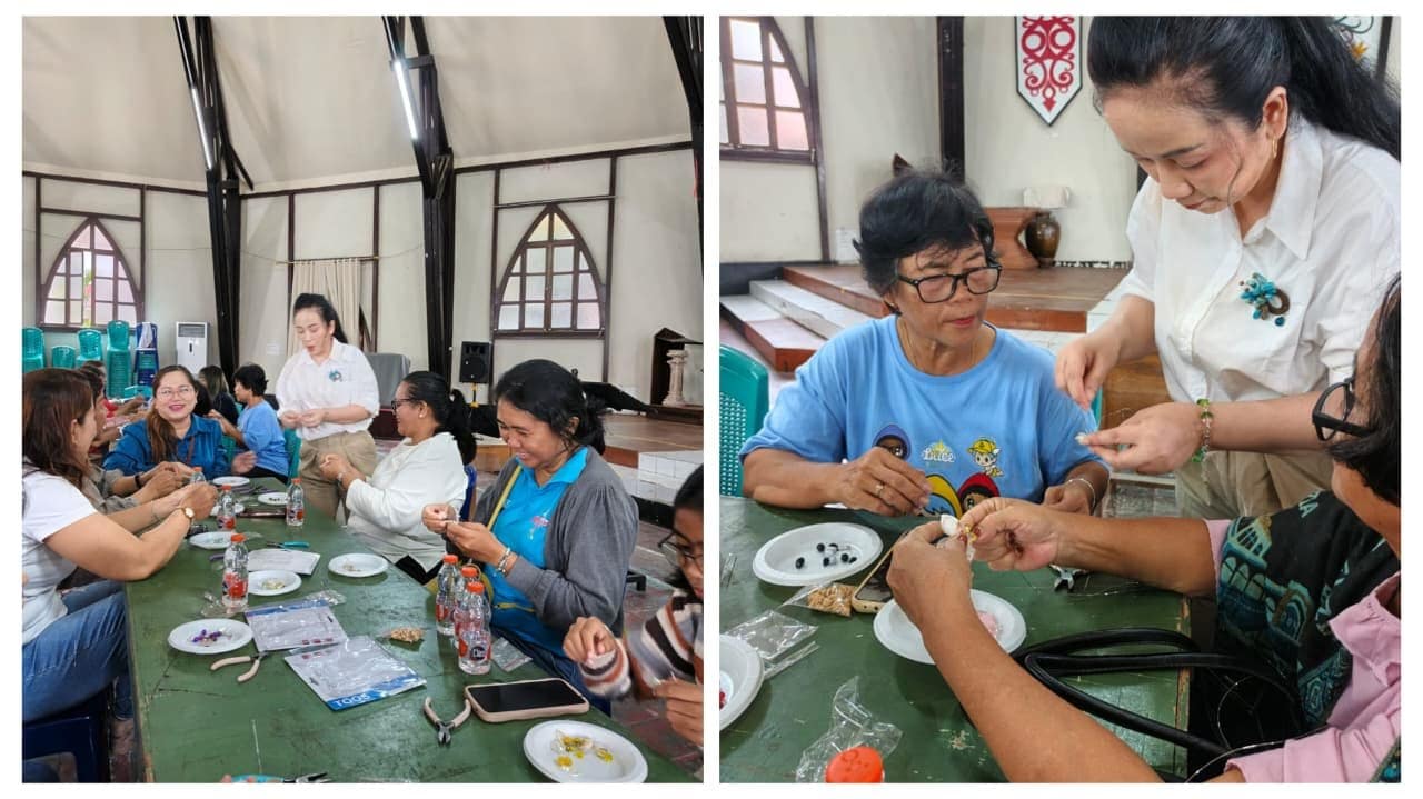 “Kami melihat potensi besar dari para ibu rumah tangga yang tergabung dalam perkumpulan ini. Melalui pelatihan pembuatan bros akrilik, kami ingin menanamkan keterampilan sekaligus membuka wawasan tentang nilai ekonomi dari karya sederhana yang bisa menjadi peluang usaha rumahan,” ujarnya, Minggu (09/11/2025) siang.