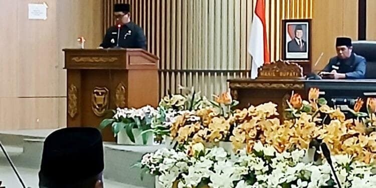 MUARA TEWEH – Bupati Barito Utara, H Shalahuddin, menyampaikan jawaban resmi atas pemandangan umum fraksi-fraksi DPRD Kabupaten Barito Utara terhadap Rancangan Peraturan Daerah tentang Anggaran Pendapatan dan Belanja Daerah (APBD) Tahun Anggaran 2026. Penyampaian jawaban tersebut berlangsung dalam Rapat Paripurna II Masa Sidang I Tahun 2025 pada Senin (24/11/2025) di ruang sidang DPRD setempat.