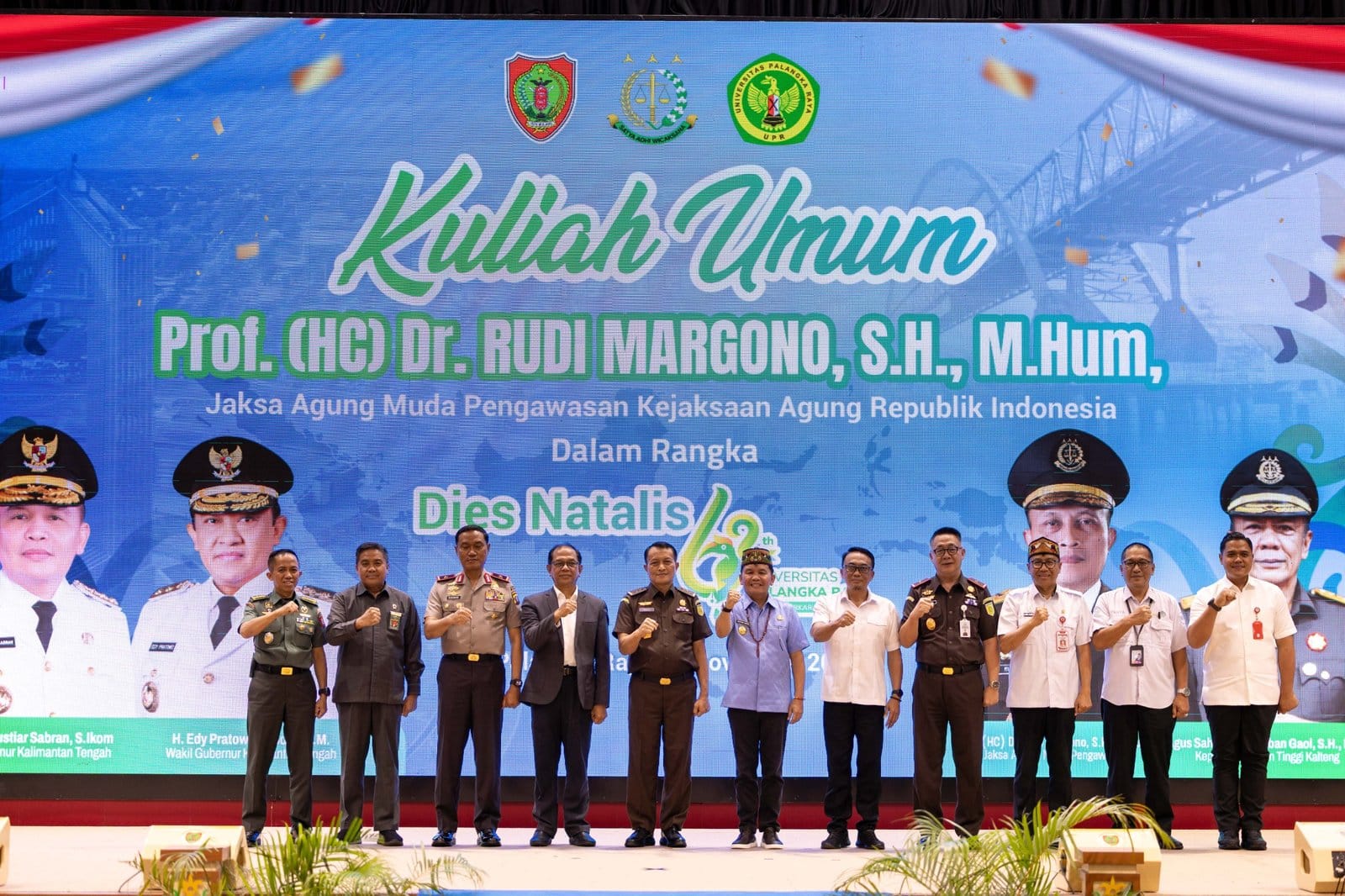 PALANGKA RAYA – Universitas Palangka Raya (UPR) melaksanakan kuliah umum dalam rangka Dies Natalis ke-62 dengan menghadirkan Jaksa Agung Muda Pengawasan Kejaksaan Agung RI, Prof. (H.C) Rudi Margono, S.H., M.Hum, di Aula Jayang Tingang Kantor Gubernur Kalimantan Tengah, Rabu 26 November 2025.